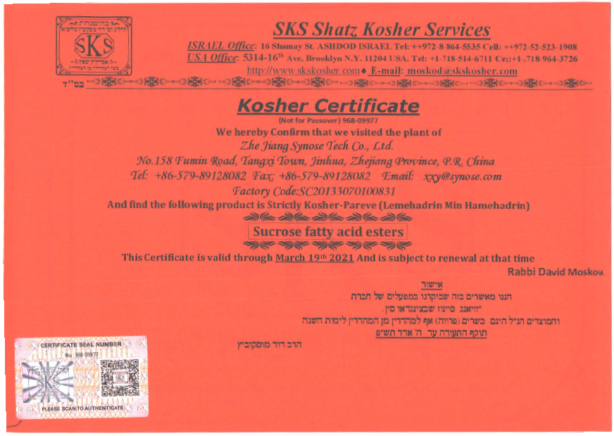 SKS KOSHER证书