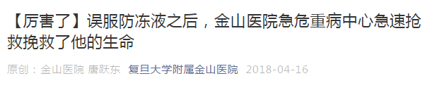 其实因误食防冻液而导致生命垂危的事情,概率一点也不低。。
